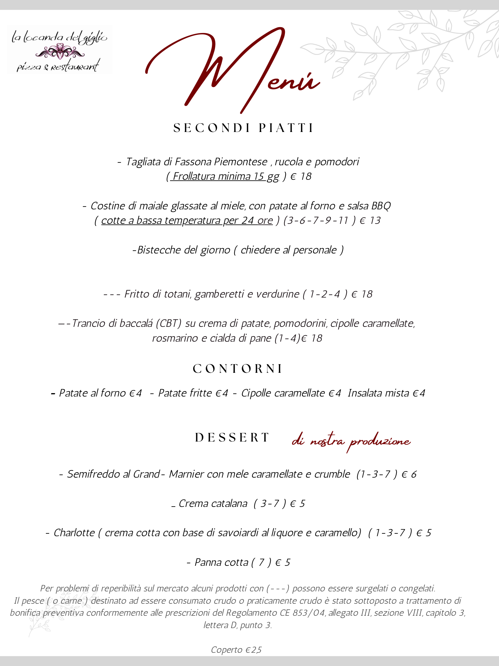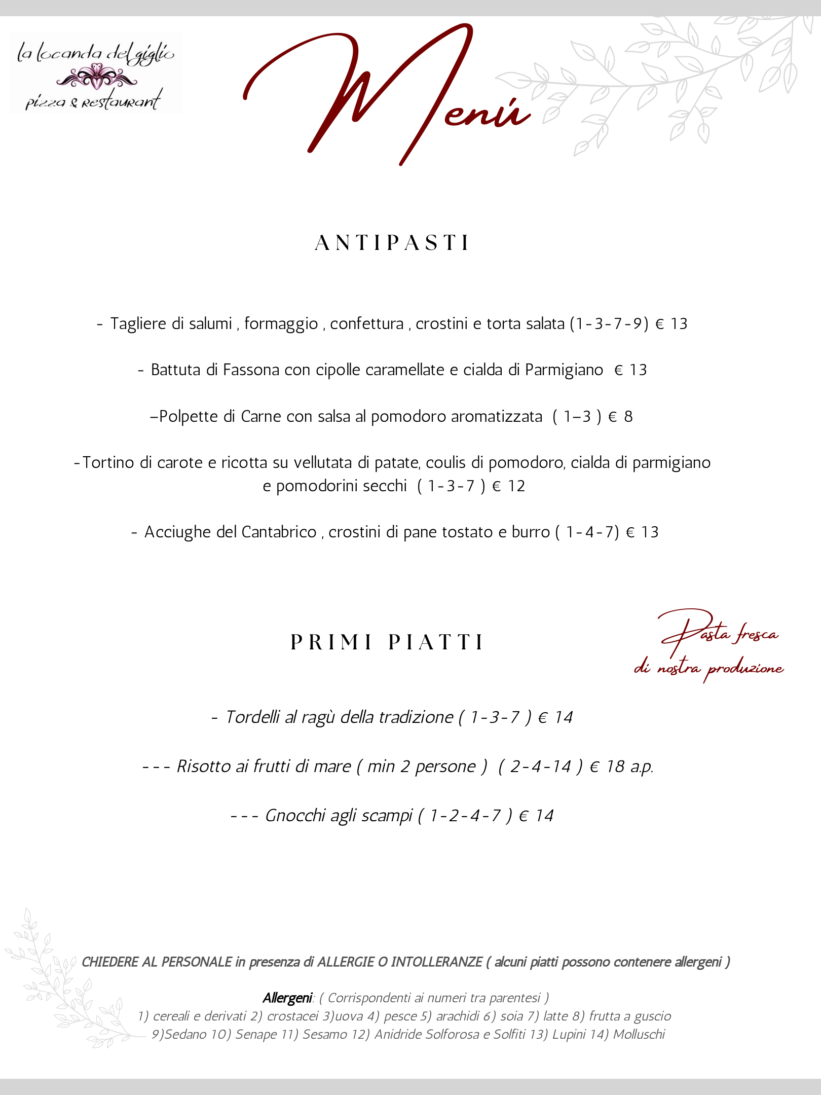 Oltre al menù qui sopra, proponiamo anche " Fuori Menù" che variano di volta in volta...